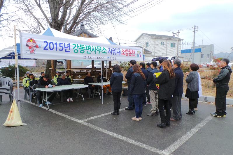 강동면사무소는 지난11일 119 안강소방안전센터, 강동면이장협의회, 강동면의용소방대, 강동면 유금3리 주민 80여명이 참여한 가운데 ‘2015년도 하반기 소방훈련’을 면사무소 주차장에서 실시했다. 이번 훈련은 면사무소 건물에 화재가 발생해 연소가 확대되어 가고 있는 가상상황을 설정하여 화재경보 발생, 초동 소화 및 인명대피 유도, 부상자 후송, 자체소화 활동까지 실제 재난발생 시 일어날 수 있는 긴박한 상황을 그대로 연출했다.특히 겨울철 건조한 날씨와 화기 사용의 증가로 화재발생의 우려가 높은 시기에 평소 사용이 힘든 소화기를 직접 분사하고, 옥내 소화전을 이용한 살수체험 등 유사시에 대비한 현장 활동 대응능력을 향상시키고 인적․물적 자원의 피해를 최소화하기 위해 실시됐다.한영익 강동면장은 “이번 소방 훈련을 통해 직원들의 초기대응능력이 향상되고 소방안전 의식이 고취된 것 같아 만족스러운 훈련이었다.”고 소감을 밝히면서 “앞으로 소방훈련을 정기적으로 실시해 예기치 못한 각종 안전사고에 철저히 대비하겠다”고 말했다.