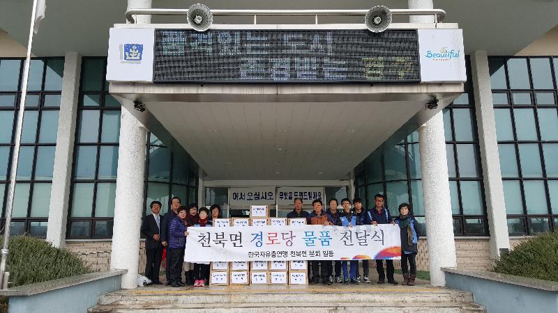 한국자유총연맹 천북면분회(분회장 김선종)은 지난10일 연말을 앞두고 라면 26박스를 구입하여 관내 경로당에 전달했다.한국자유총연맹 천북면분회는 평소에는 지역주민들에게 관심과 애정을 가지고 화합을 도모하고 있으며 지역행사에도 적극적으로 참여하고 협조하는 모범적인 단체이다. 김선종 분회장은 “경로당에는 어려운 이웃들이 많이 찾는 곳이며 추운 날씨에 어르신들이 따뜻한 여가시간을 보내드리기 위해 작은 정성을 담았다며 추운 겨울 건강하게 잘 보내시기를 기원” 했다.서기태 천북면장은 “이맘때면 늘 잊지 않고 정성을 보내주는 한국자유총연맹 천북면 지회에 감사의 뜻을 전하며, 앞으로도 지역사회와 면민들에게 항상 웃음과 사랑을 전도하는 지역의 대표 봉사단체로 거듭 발전하기를 당부” 했다.