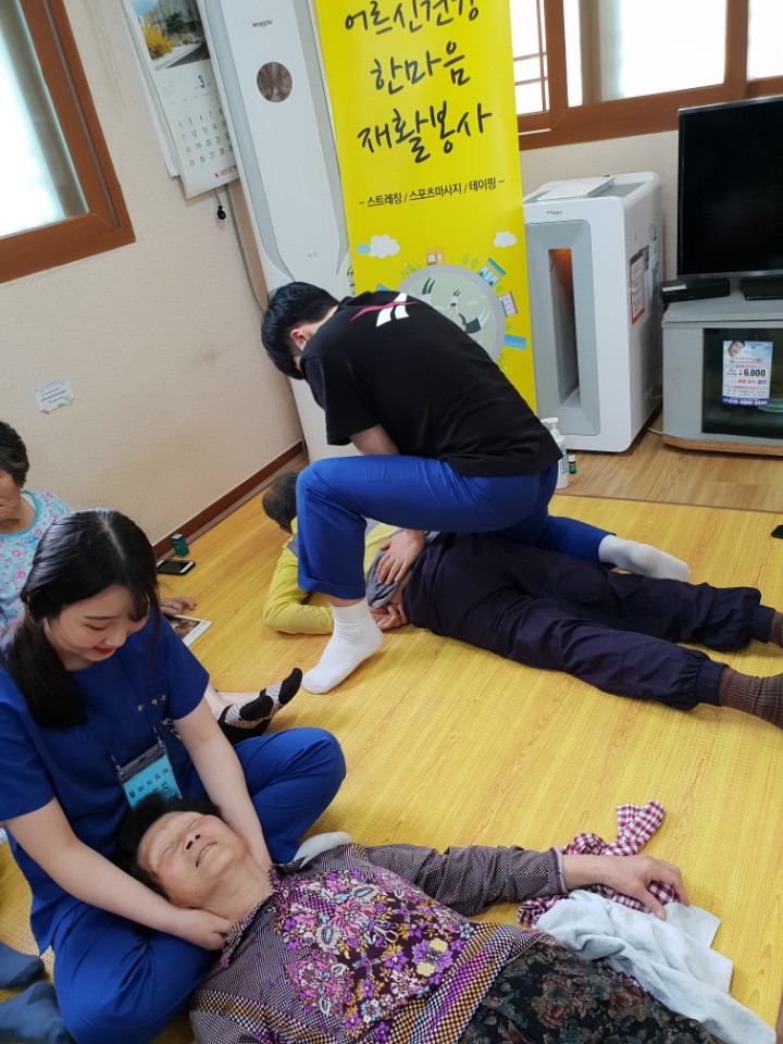 올 상반기에는 6개소(신근3리, 하2통, 신지2리, 무촌리, 멱곡1리, 처리) 경로당에 서비스를 실시 하였고, 하반기 재활서비스 봉사 일정은 다음과 같다. ▲9월27일 연라1통 ▲10월4일 능현통 ▲11월1일 상거통 ▲11월29일 강천면 굴암리