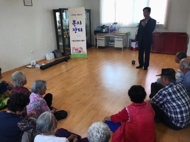 지난 12일 수요일, 오산리 경로당에서 주민 35명이 참석한 가운데 올해 15번째‘찾아가는 복지장터’를 개최했고 프로그램 중 치매 예방 교육이 진행됐다. 어르신들의 흥미를 유도하기 위해 간단한 치매 예방 율동으로 시작하여 예방 교육·치매 척도 검사까지 시행하고 검사결과 치매 점수가 높은 어르신은 약제비 지원까지 지원한다.