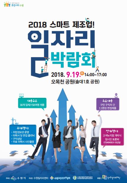 수원시는 19일 오후 2시부터 5시까지 권선구 오목천공원에서 ‘2018 스마트 제조업! 일자리 박람회’를 연다.