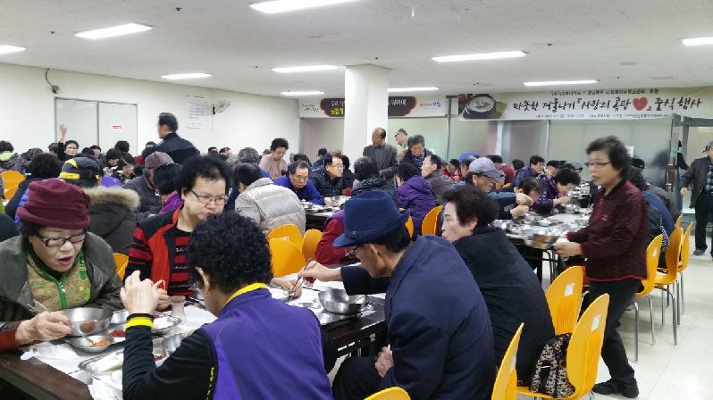 포항시시설관리공단 노인복지회관은 노인복지회관 경로식당에서 지난11일 ㈜SK와 경상북도 사회복지공동모금회의 후원으로 ‘사랑의 곰탕’ 무료 배식봉사를 실시했다. 동절기 지역 어르신들의 따뜻한 겨울나기의 일환으로 진행된 이번 행사에서는 700인분의 소머리곰탕을 준비해 복지회관을 찾은 어르신들 한 분 한 분에게 직원과 자원봉사자들이 직접 배식했다. 노인복지회관 관계자는 “이번 후원 행사를 통해 추운 겨울 어르신들의 마음이 조금이나마 따뜻해지길 바란다”고 말했다.