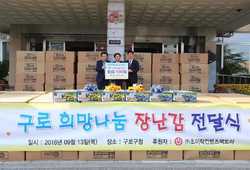 구로구 관내 장난감 제조업체인 ㈜초이락컨텐츠팩토리(대표 최종일)가 추석을 맞아 저소득가정 아이들을 위해 장난감을 기부했다.