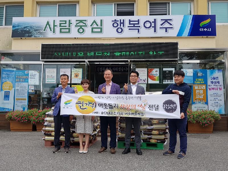 여주시 종단대순진리회는 한가위를 앞둔 지난 14일, 강천면에 여주쌀 20kg, 100포(600만원 상당)를 어려운 이웃들에게 전달해 달라며 후원했다.