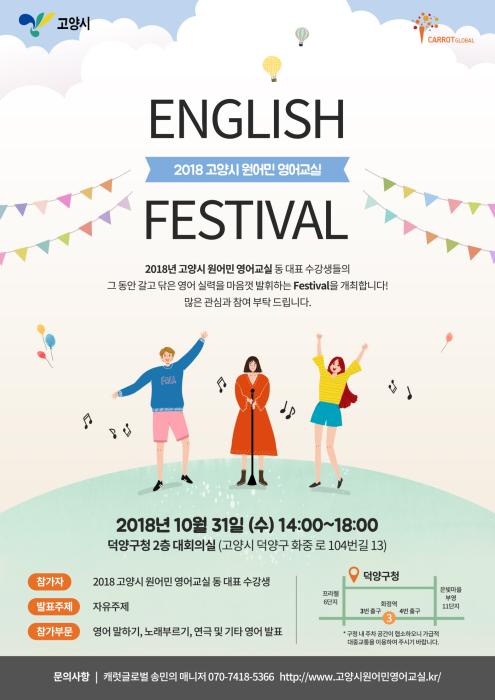 고양시는 오는 31일(수) 오후 2시 덕양구청 대회의실에서 ‘2018 고양시 원어민 영어교실 English Festival’을 개최한다
