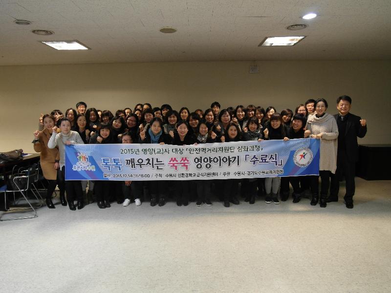 수원시가 학교급식의 안전성을 높이기 위해 운영한 안전먹거리지원단 심화과정 ‘톡톡 깨우치는 쑥쑥 영양이야기’를 마치고 지난 14일 농협수원유통센터 세미나실에서 수료식을 가졌다.