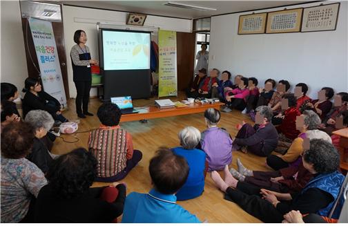 광명시정신건강증진센터는 관내 경로당을 방문해 ‘행복한 노년을 위한 마음건강 교육’ 을 실시하고 60세 이상 1051명을 대상으로 우울증 검사와 상담을 진행했다. 검사 대상자는 남자가 21%, 여자가 79%였으며, 전체 대상자 중 16.3%가 우울증 고위험군에 해당됐으며 고위험군의 78%가 여자였다. 연령별로는 70대가 43%로 가장 많았고 주로 신체적 질환과 경제적문제로 인한 어려움을 호소했다.