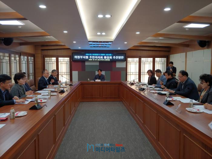 의정부시(시장 안병용)는 10월 24일 의정부시청 소회의실에서 ‘의정부시형 주민자치회 활성화 추진방안’을 주제로 제317차 자치행정국 조찬포럼을 개최했다.