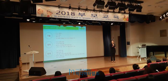 이날 교육은 ‘With You 치료교육연구소’ 최은정 대표를 초청해 ”자녀 기질에 따른 부모역할“이라는 주제로 강연을 진행했다.