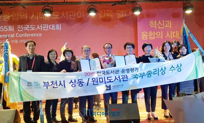 원미도서관과 상동도서관은 10월 24일 강원도 하이원그랜드호텔에서 열린 제55회 전국도서관대회 개막식에서 전국 도서관 운영평가 공공도서관 우수기관으로 국무총리 표창을 받았다.