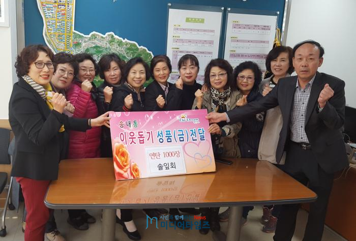 동두천 송내동에 오랫동안 거주하거나 송내동 내 상가를 운영하는 주민들로 결성된 솔잎회(회장 최숙자)는 지난 24일 송내동 행정복지센터를 방문해 연탄 1,000장을 기탁했다.