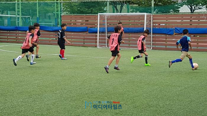 저학년은 성남시와 구리시 드림스타트 아동이 섞인 청군과 백군의 축구경기로 진행된다.