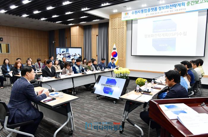 | 수원시 중회의실에서 열린 중간보고회 사진. |