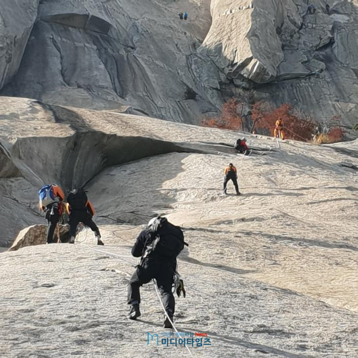 경기도 북부소방재난본부(본부장 이상규)는 25일 고양시 덕양구 북한산 인수봉 일대에서 가을·겨울철 등산객의 조난·추락 사고를 대비한 합동 산악구조 훈련을 실시했다.
