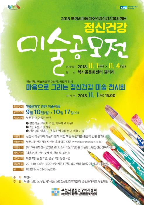 부천시와 부천시아동청소년정신건강복지센터는 ‘마음으로 그리는 정신건강 미술 전시회’를 11월 1일부터 4일까지 복사골문화센터에서 개최한다.