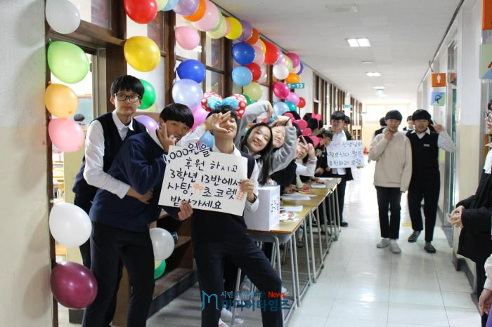 3학년 13반(담임 장혜연) 학생들이 자발적으로 전교생 대상으로 10월 22일(월)부터 벼룩시장과 모금활동을 진행하고 있으며, 10월중 서울 상계동에 사시는 어르신들에게 1,400여장의 연탄을 학생들이 직접 전달해 드릴 예정이다.