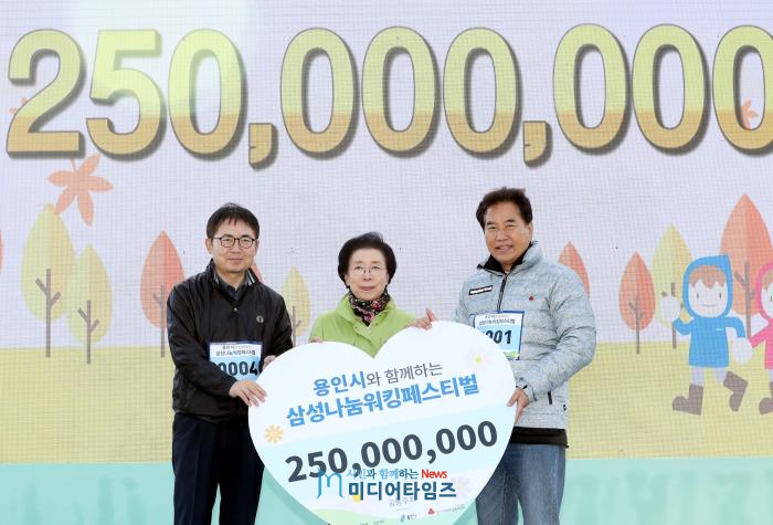 이날 시민 참가비(1인 5천원)만큼 삼성전자가 일대일 매칭기부금을 내 모인 2억5천만원은 경기사회복지공동모금회를 통해 용인시에 전달됐다.