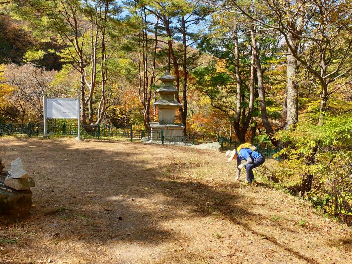 무장사지에서 환경정화를 하고있는 등산객