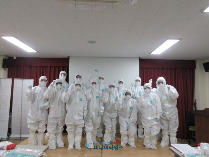 이날 교육에 참가한 직원들은 개인보호복을 직접 입고 벗는 실습훈련을 통하여 유사시 현장 투입요원으로서의 준비를 마쳤다.