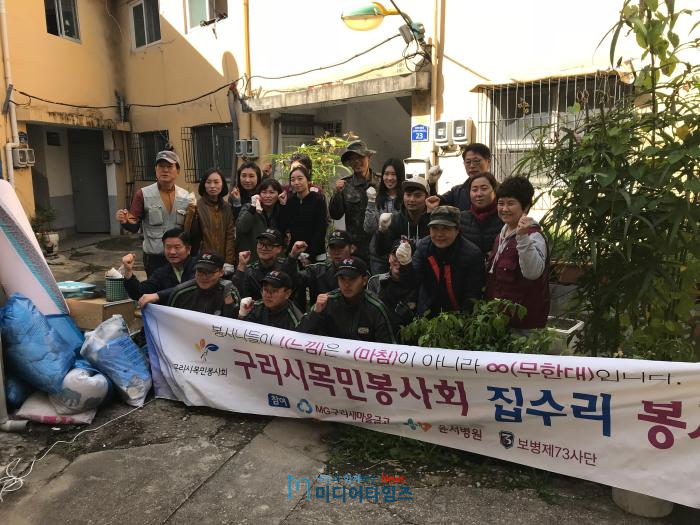 이날 집수리에는 목민봉사회(회장 윤재근) 회원 15명과 73사단(사단장 김무수) 장병 7명 등 20여명의 봉사자들이 참여하여 수택1동에 거주 중인 73세의 참전 유공자 어르신 댁의 보일러 및 씽크대 교체, 도배, 장판 등 주거 환경 개선과 따뜻한 겨울나기를 위해 구슬땀을 흘렸다.