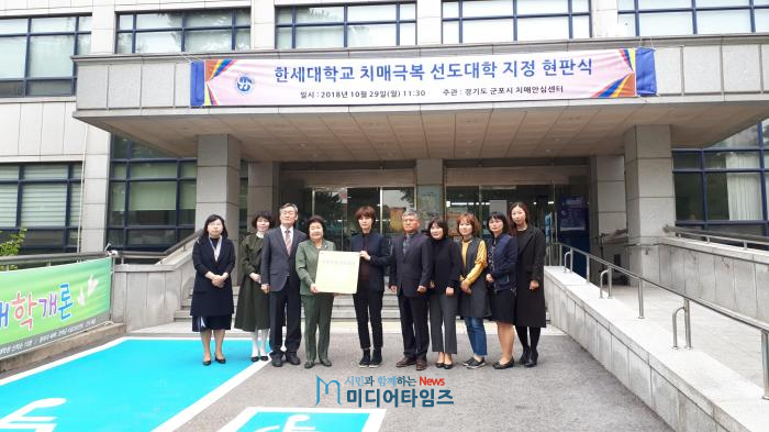군포시(시장 한대희)는 29일 한세대학교를 ‘치매극복선도대학’으로 지정하고, 현판식을 개최했다고 밝혔다.
