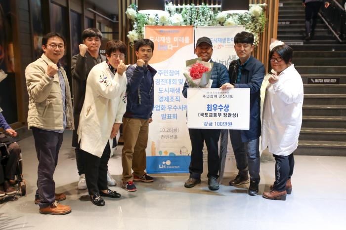 이번 경진대회는 대구 삼성창조캠퍼스에서 지난 10월 25일부터 27일까지 진행 된 도시재생한마당 행사 중 도시재생뉴딜사업의 주민참여 활성화와 대외홍보를 위해 마련한 것이다. 광역지자체에서 우수사례로 추천한 팀 중에서 서류심사를 거쳐 12팀을 본선 대상자로 선정했으며, 26일 팀별 대표자의 최종발표를 통해 수상자를 선정했다.
