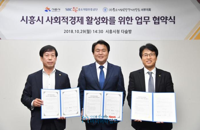 시흥시(시장 임병택)는 지난 29일 중소기업진흥공단 경기서부지부, 중소기업융합 경기연합회 서부지회와 사회적경제 활성화를 위한 업무협약을 체결했다.