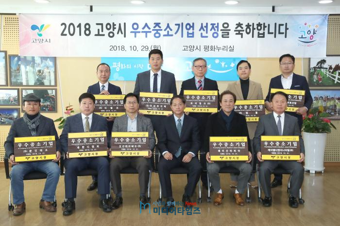고양시는 지난 29일 시청 2층 평화누리실에서 ‘2018년도 고양시 우수중소기업’으로 선정된 10개 기업 대표들에게 인증서와 현판을 수여했다.