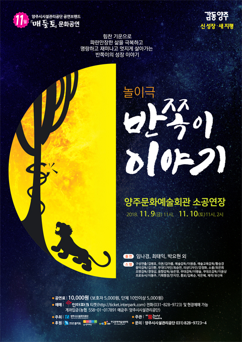 양주시시설관리공단은 오는 11월의 매둘토 문화공연으로 놀이극 반쪽이 이야기를 문화예술회관에서 개최한다고 밝혔다.