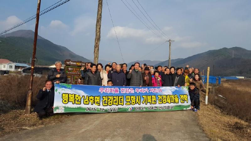 2015년 경상북도 건강새마을조성사업 평가에서 우수마을로 선정된 기북면건강새마을의 추진경험과 우수사례를 벤치마킹하기 위해 15일 안동시 건강새마을 건강위원 60여명이 기북면 건강새마을을 방문했다. 이날 안동시 건강새마을 건강위원 60여명은 기북면 건강새마을 조성사업 추진내용 및 우수사례 청취, 건강 체험터 요가교실 프로그램 등 주민주도형으로 잘 조성된 건강새마을 조성사업에 감탄하며 큰 호응을 보였다. 또한 죽도시장 투어, 덕동전통문화마을 탐방 등 포항시 주요 관광지를 방문했다. 박혜경 북구보건소장은 “주민 스스로 건강관리활동을 이끌어갈 수 있는 시스템을 구축하기 위해 주민건강강사 양성, 건강동아리 활성화, 기북면 복지위원회 및 자생단체와 협력하여 지역자원 네트워크 강화할 것”이며 “시에서 매월 실시하는 클린데이와 연계해 건강새마을데이 운영 등 건강100세로 가는 살기 좋은 건강문화조성을 주민들이 주도하도록 힘을 기울일 계획”이라고 말했다. 한편 기북면 건강새마을조성사업은 북구보건소가 정부 3.0 브랜드과제로 행복한 우리 마을 건강3.0 프로젝트로 추진하고 있는 사업으로, 주민주도형 건강공동체를 만들기 위해 마을자체 건강위원회 조직을 구성 운영하고 있으며, 마을의 건강문제를 스스로 해결하기 위해 노력하고 있다. 지난 10월 청송군·영양군 건강위원 110여명 방문에 이어 11월 울진군 매화면 건강위원 및 건강리더 50여명이 기북면 건강새마을을 찾는 등 타 지자체 방문이 이어지고 있다.