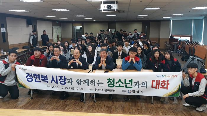 광양시는 지난 10월 27일 청소년문화센터 다목적실에서 청소년 참여‧운영위원 100여 명을 초청한 가운데 정현복 시장과의 대화 시간을 가졌다고 밝혔다.