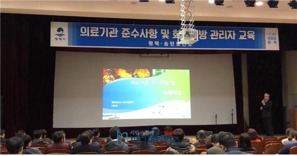 평택시(시장 정장선)는 지난 31일 요양병원 등 의료기관에서의 재난발생에 대비해 의료기관 안전책임자 약 70명이 참석한 가운데 남부문예회관에서 교육을 실시했다.