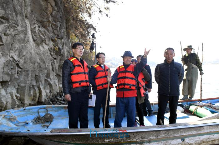 최종환 파주시장과 우관제 파주문화원장, 차문성 향토문화연구소장, 연구원 등 30여명은 어선 4척을 이용해 민간의 출입이 통제되고 있는 임진강 초평도와 두포리 구간을 돌며 석벽에 새겨진 석각들과 율곡리 구간의 주상절리, 전쟁 이후 민간의 손길이 닿지 않았던 초평도의 생태환경 등을 직접 확인했다.