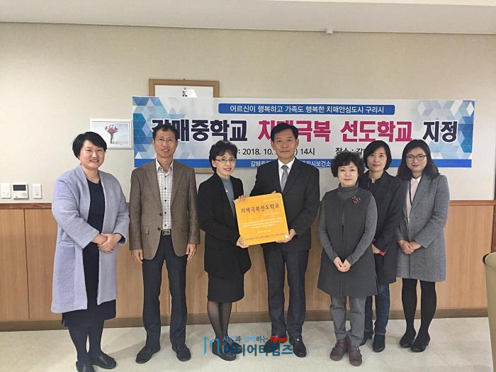 구리시(시장 안승남)의 치매안심센터(센터장 최애경)는 지난 달 30일 구리시 관내의 갈매중학교(교장 이명숙)를 ‘치매 극복 선도 학교’로 지정하는 현판식을 개최하였다.