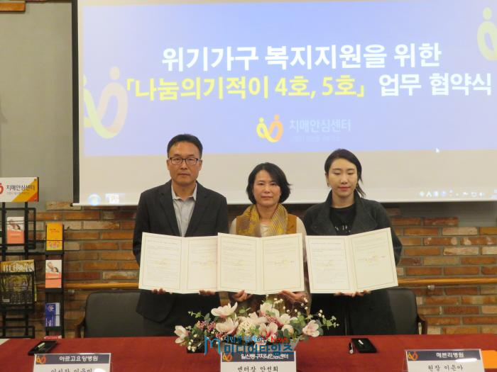 고양시 일산동구보건소 치매안심센터는 지난 29일(월) 아르고요양병원, 해븐리 병원과 저소득층 치매 극복 및 치매안전망 구축을 위한 ‘나눔의 기적이’ 4호, 5호 업무 협약을 체결했다.