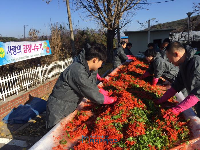 포천시 창수면(면장 이경훈)에서는 31일 창수면새마을부녀회장이 주관하고 새마을지도자, 이장협의회, ㈜포천파워 후원으로 사랑의 김장나누기 행사를 창수면사무소 광장에서 진행했다.