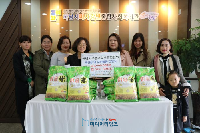 또한, 지난달 25일 초중고 학부모연합회에서는 후원금 전액(200만원) 및 후원물품 쌀 5kg 10포대를 하남시미사강변종합사회복지관에 기부함으로써 지역 내 어려운 이웃들을 대상으로 장학사업, 복지사업에 사용될 예정이다.