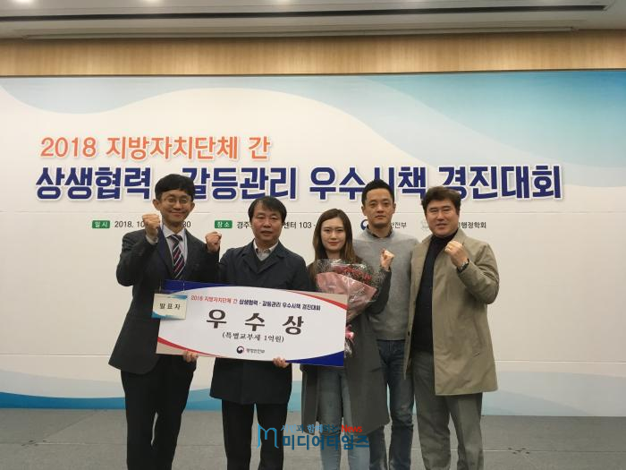 화성시가 행정안전부로부터 상생협력·갈등관리 우수시책에 선정돼 표창과 함께 특별교부세 1억 원을 획득했다.