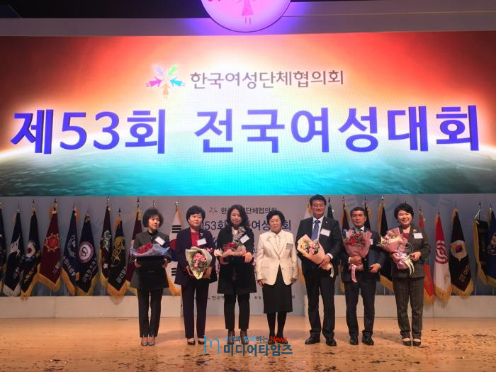 원창묵 원주시장이 지난달 31일 서울 코엑스 오디토리움에서 열린 제53회 전국여성대회에서 한국여성단체협의회가 수여하는 ‘우수지방자치단체장상’을 수상했다.