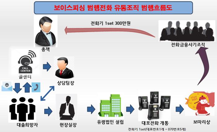 이후 이들은 유령법인 33개 개설하여 그 명의로 860여개 대포전화와 전화기를 중국내 전화금융사기 범죄조직에 공급해 10억여 원을 챙겼다.