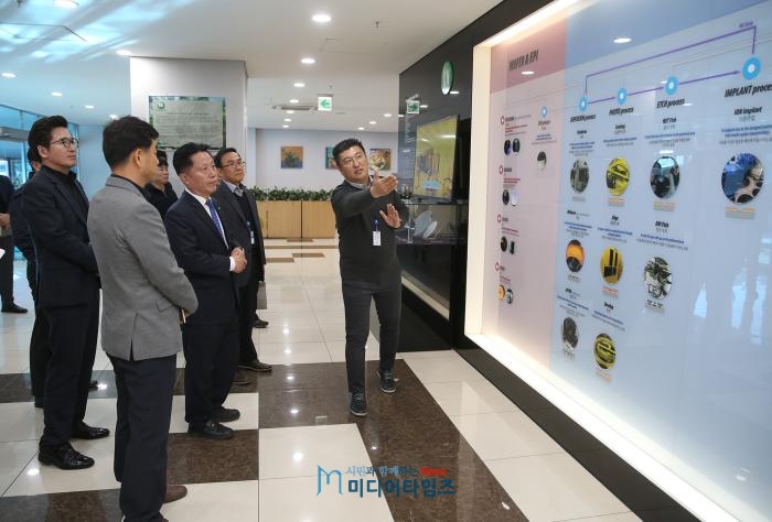 장 시장은 구교형 경영지원실장 등 임원진들과 대화를 하고 반도체 생산 공정을 시찰하는 시간을 가졌다.