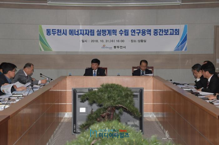 동두천시(시장 최용덕)는 지난 10월 31일 16시 시청 상황실에서 시장, 부시장, 국장, 각 부서장 등 30명이 참석하여, 동두천시 에너지자립실행계획 연구에 대한 중간보고회를 개최했다.