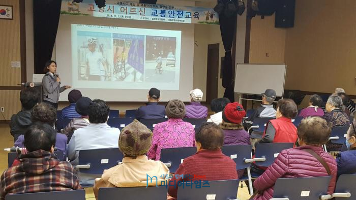 고양시는 고령화로 인한 신체기능 및 인지능력 저하로 교통사고 위험에 노출되어 있는 70세 이상 어르신을 대상으로 지난 1일(목) 흰돌종합사회복지관 3층 강당에서 일산동부경찰서와 협력해 ‘어르신 교통안전 교육’을 실시했다.