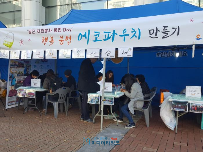 이번 홍보부스는'옹진 섬 농․수․특산물 직거래 장터' 방문객들을 대상으로 지역 및 자원봉사센터 알림은 물론 자원봉사자 모집, 홍보물 배부, 에코파우치 만들기 체험프로그램 운영으로 이색적인 체험을 제공하여 자원봉사에 대한 관심과 참여를 효과적으로 이끌어냈다.