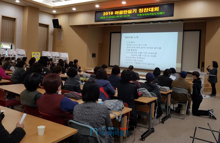 수원시와 수원시지속가능도시재단은 지난 3일 팔달구 선경도서관 1층 강당에서 ‘2018 마을만들기 칭찬대회’를 열었다.