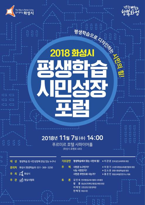 화성시가 오는 7일 푸르미르호텔에서 ‘2018 평생학습 시민성장 포럼’을 개최한다.