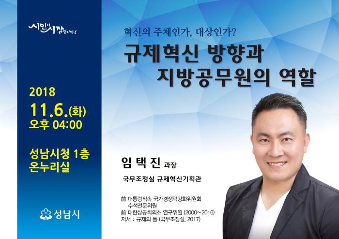 | 규제혁신 방향과 지방 공무원의 역할 강연 안내문. |