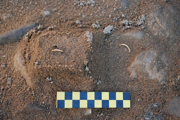 | 토광목곽묘에서 나온 금귀걸이 출토 현장. (사진=문화재청) |