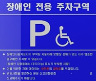 장애인 전용주차구역에 불법 주·정차 차량으로 적발될 경우 10만원의 과태료가 부과되며, 전용주차구역 선과 전용표시 등을 지우거나 훼손하는 행위 등으로 전용주차구역의 주차를 방해할 경우 50만원의 과태료가 부과된다.