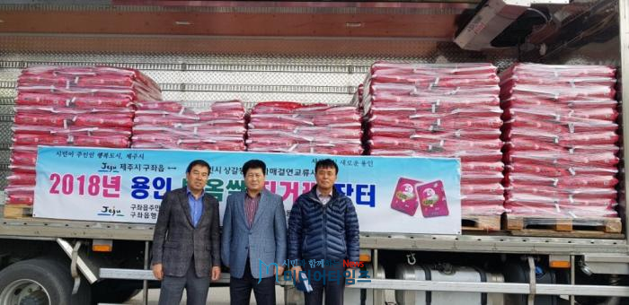 용인시 기흥구 상갈동 주민자치위원회는 7일 제주시 구좌읍사무소에서 ‘용인백옥쌀 직거래장터’를 열었다.
